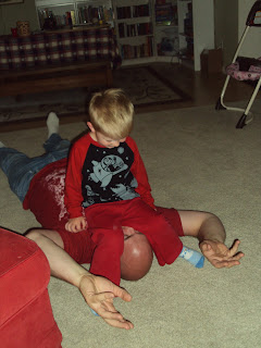 The boy has learned to demand Daddy "say uncle" while wrestling. The boy was sitting on Daddy's neck yelling "say uncle say uncle SAY UNCLE!" Daddy was saying it but the boy was sitting on his mouth so he couldn't hear it. Then the boy was holding on to Daddy's legs and Daddy turned the tables by putting his legs up in the air, the boy was still yelling "SAY UNCLE!" It was pretty funny.